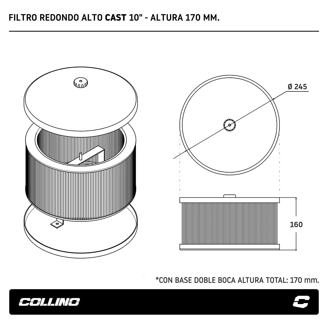 FILTRO AIRE REDONDO 10" ALTO FORD RACING