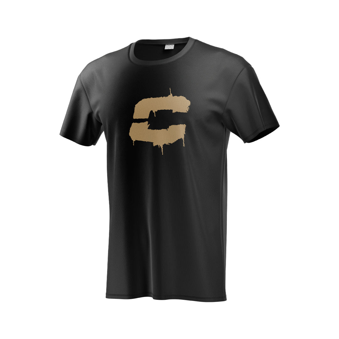 Remera negra de algodón con logos estampados en serigrafía color vintage. Diseño clásico, cómodo y con la actitud de siempre: puro estilo Collino.