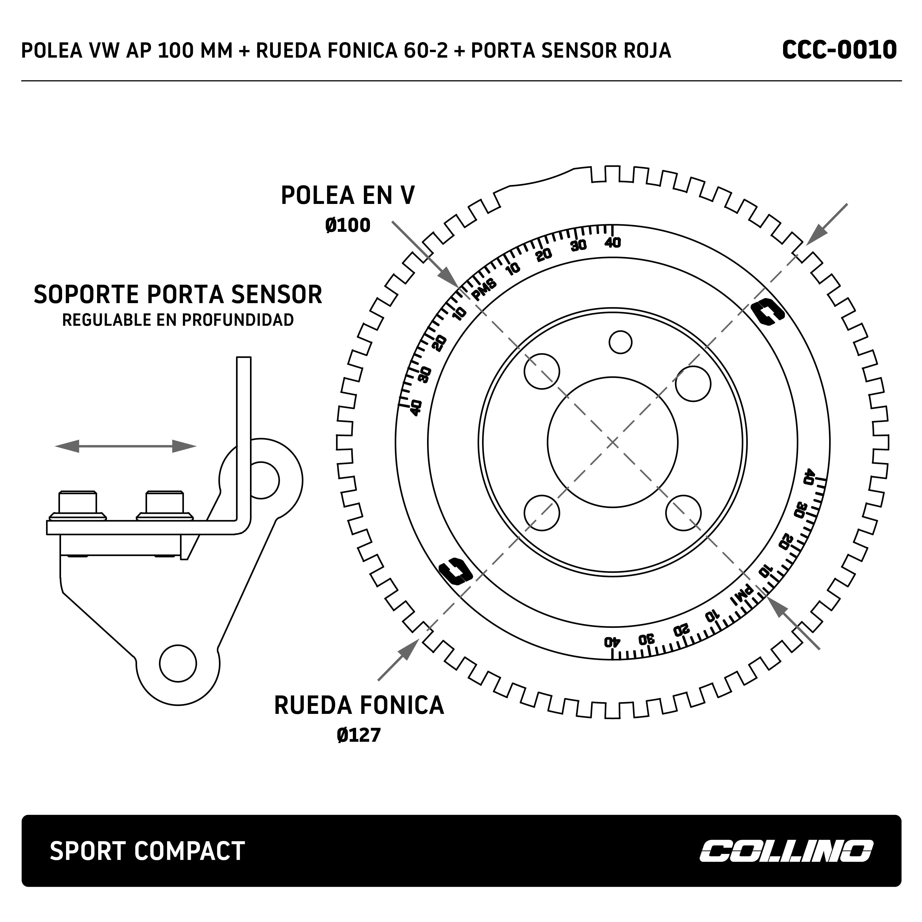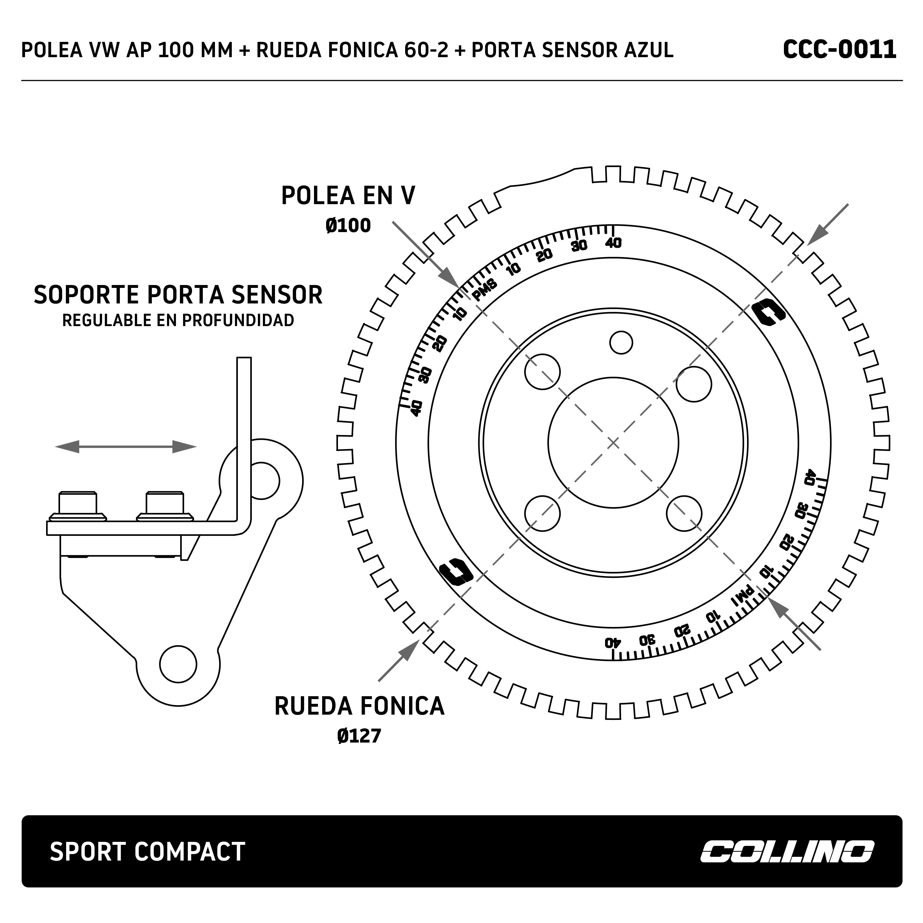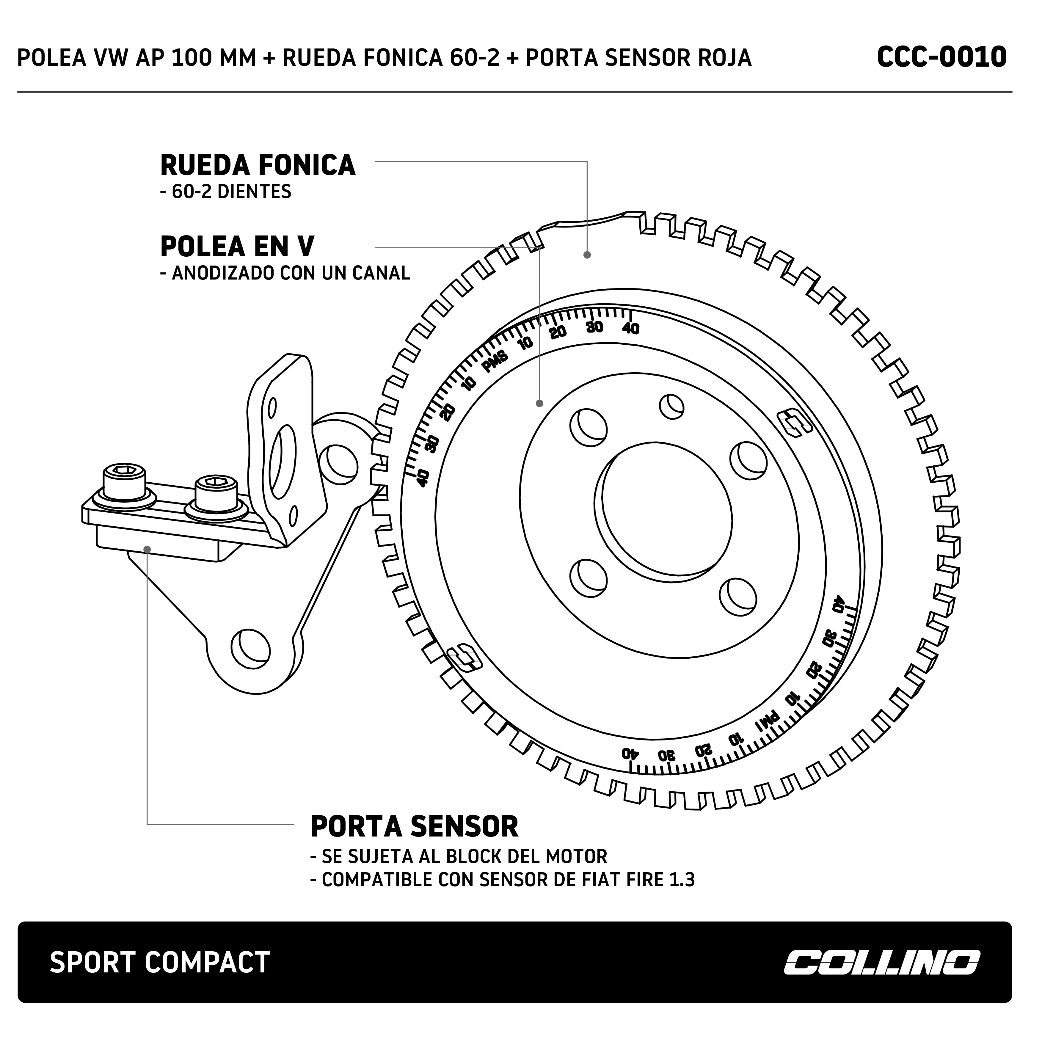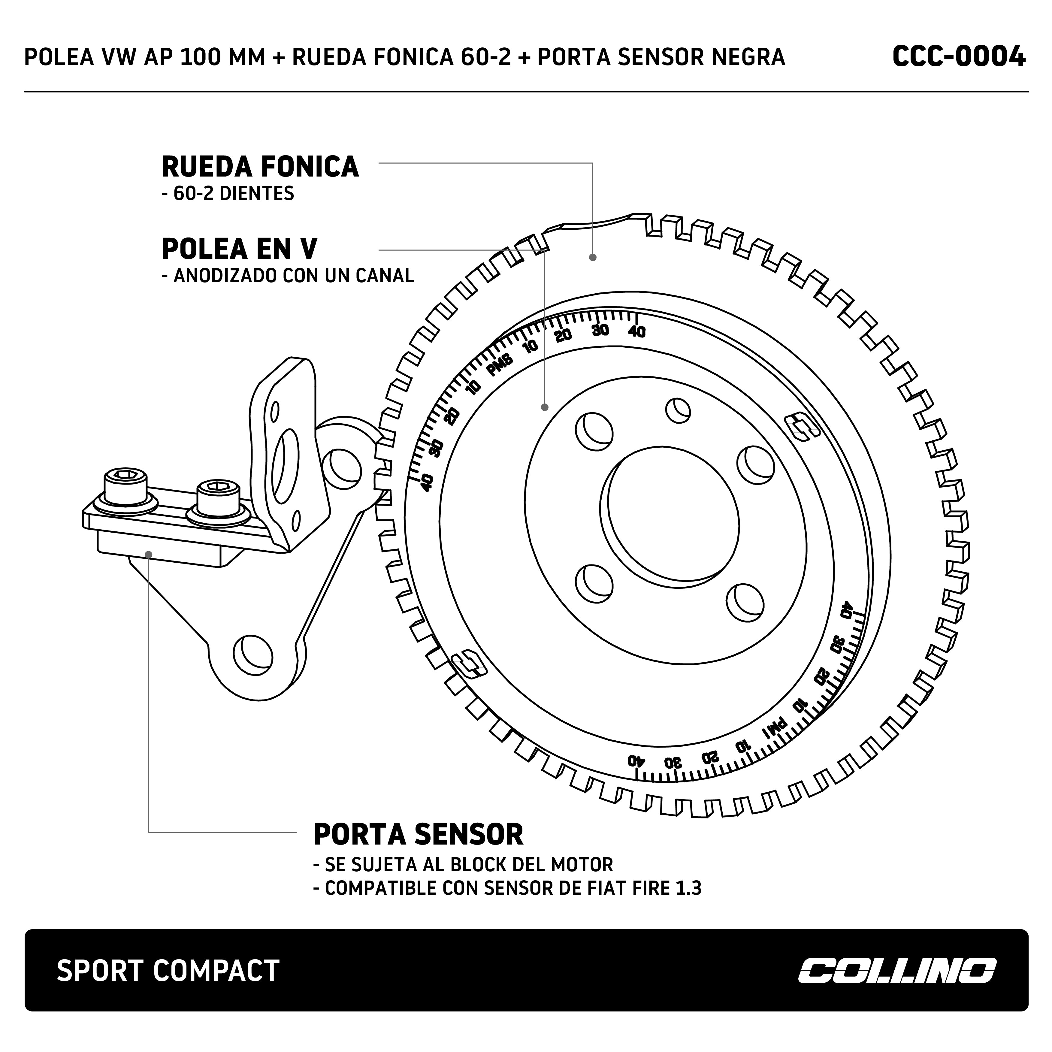 POLEA VW AP 100 MM + RUEDA FONICA 60-2 + PORTA SENSOR