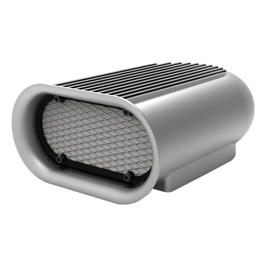 Fabricada en aluminio de alta calidad, ofrece buena rigidez estructural, durabilidad y una excelente resistencia al uso prolongado y a las condiciones del vano motor. El diseño frontal favorece una admisión directa y ordenada, contribuyendo a una correcta respiración del motor.